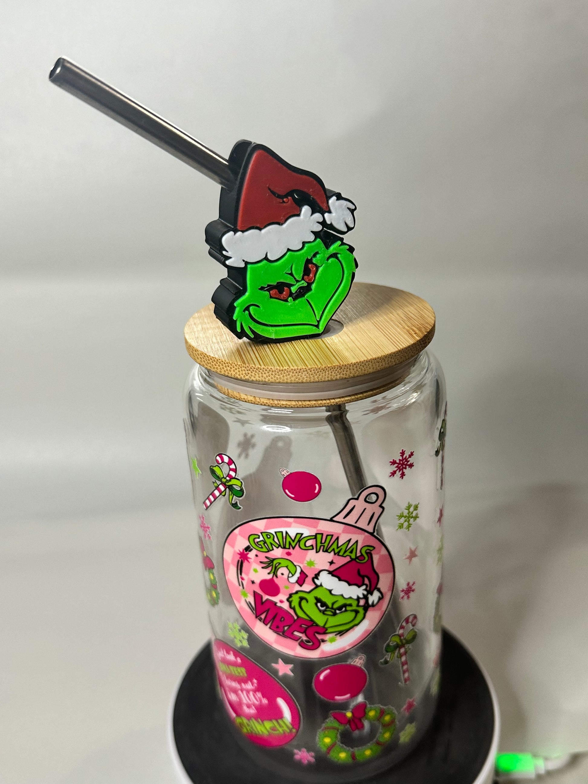 Grinchmas Vibes 16oz Libby Glass – Holiday Cup with Bamboo Lid & Straw